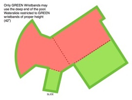 - Appropriate colored Bands will be placed on your child at the Welcome Center or Pool Desk. This information is based on the testing information provided by the Aquatic's Department.